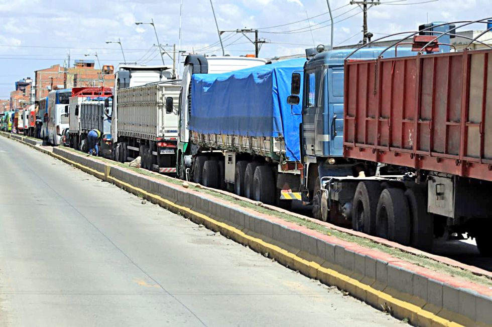 EL ALTO. Extensas filas de transporte pesado en una estación de servicio para comprar diése