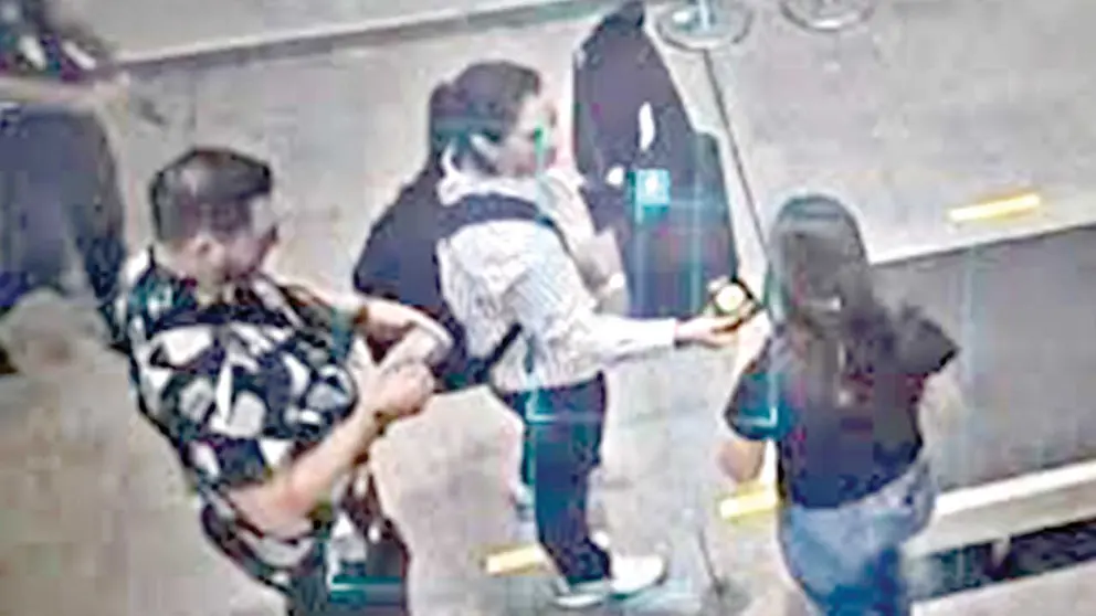 Laura Rojas en el momento en el que recogía las maletas de Viru Viru.