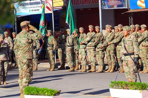 Durante la ceremonia, se realizó la iza de banderas como muestra de respeto y homenaje a los 77 años de San José de Pocitos, una zona estratégica en la frontera sur del país.