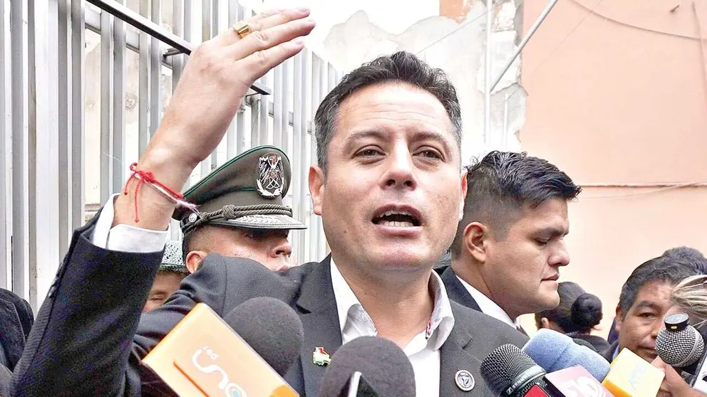 El vicepresidente Edmand Lara en una conferencia de prensa.